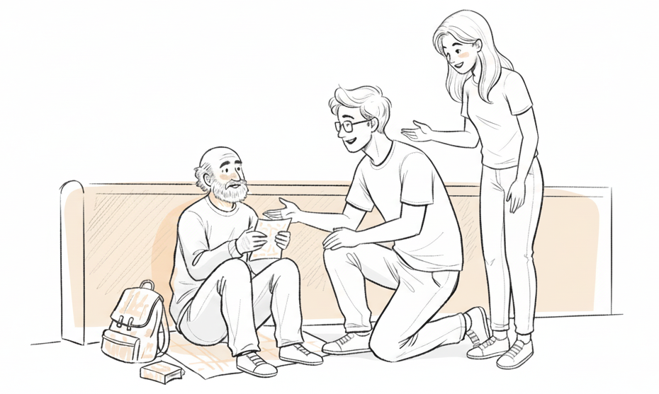Kdo potrebuje tvojo pomoč? So to brezdomci, otroci s posebnimi potrebami, morda begunci in migranti, zaporniki, ostareli, umirajoči? Ne samo, da ti bomo pomagali razločiti, tudi vključili te bomo in ti stali ob strani.